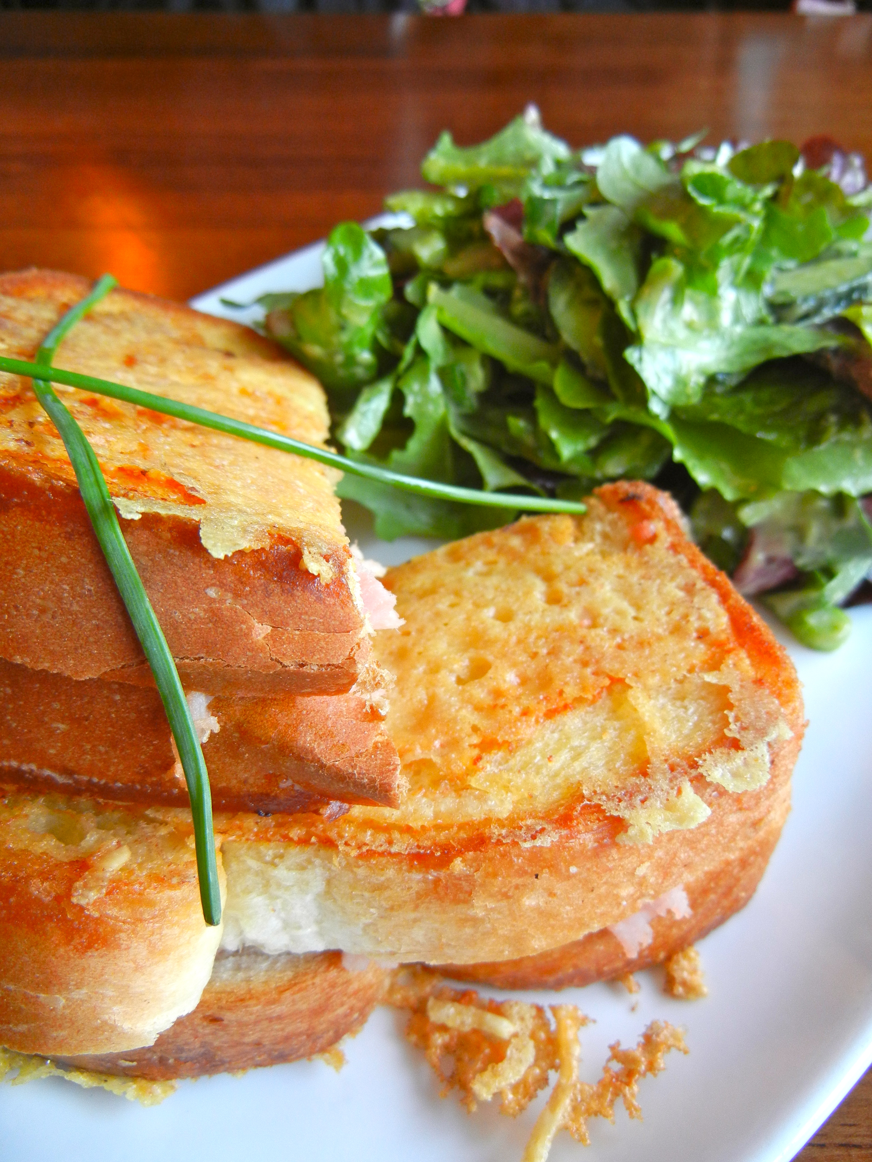 Next up, Ham & Gruyère, our second favorite of the day. To start, this sandwich was perfectly cooked, golden brown and oh, if I could encrust all my sandwiches with Gruyère, well life would just be a whole lot better! Wikipedia describes Gruyère as sweet but slightly salty cheese from Switzerland, with a flavor that varies widely with age. It is often described as creamy and nutty when young, becoming with age more assertive, earthy, and complex. When fully aged (five months to a year) it tends to have small holes and cracks which impart a slightly grainy mouthfeel. It has always been a favorite cheese at our house. The kitchen staff at The Liffey puts a whole mess of thinly-sliced ham, topped with a Dijon cheese sauce (uh, yeah, they should bottle & sell that stuff) in between two slices of sourdough bread and then slather the outside of the bread with creamy Irish Butter and grated Gruyère. You can have it served with fresh-cut chips (they are kettle-style chips, coated in dill), champ (mashed potatoes with fresh chives), wee greens (as shown, with mixed greens, tossed in honey-chive vinaigrette, cucumbers, scallions & radishes), or a cup of their homemade soup. GO GET THIS SANDWICH PEOPLE!!! They only thing that would have made it better, was if I would have had it with a Crispin Cider! Or a Guinness….or…..