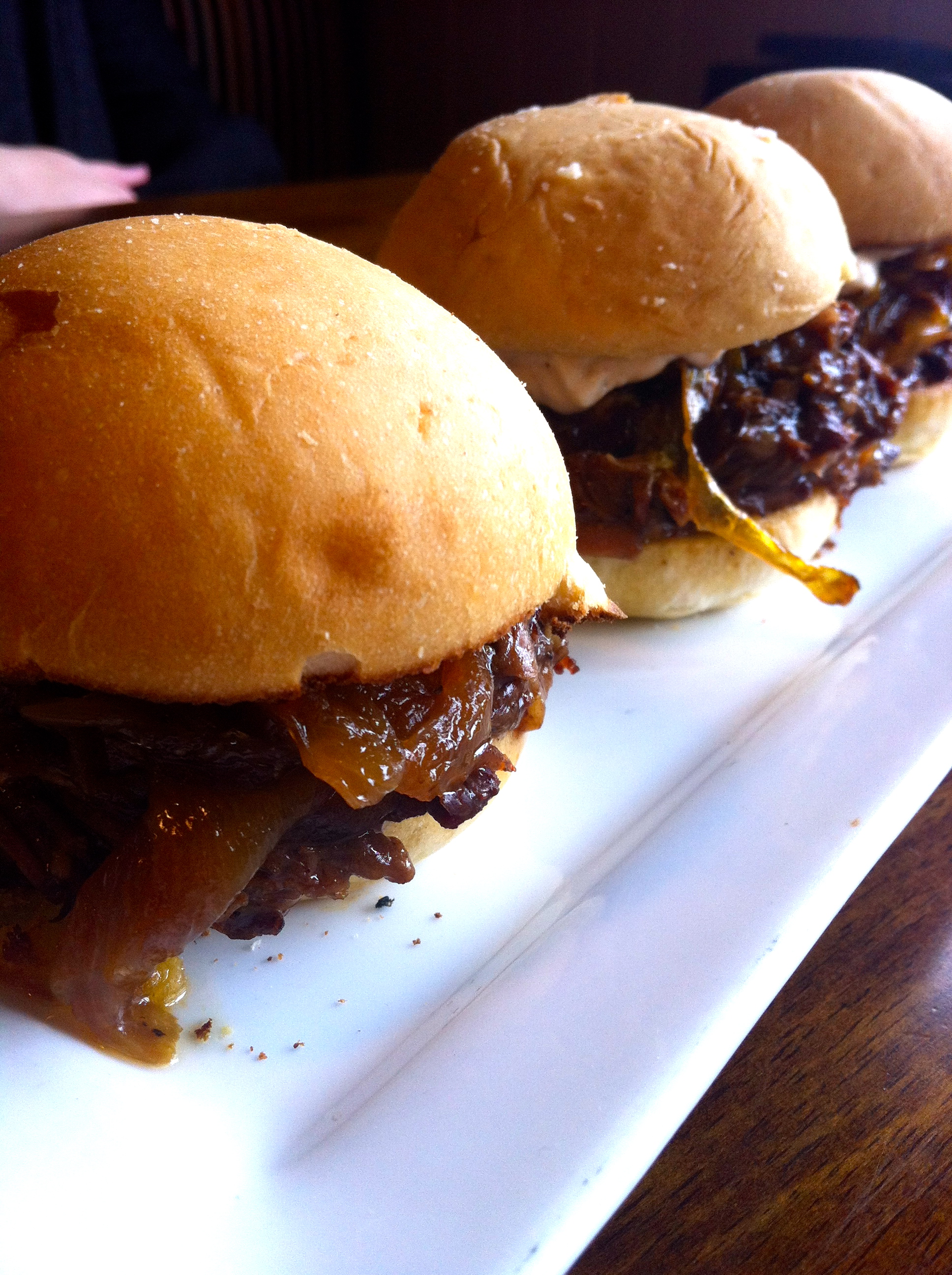 First up, Pot Roast Sliders……these little cuties were in the top two of what we tasted today. Soft buttery buns, stuffed with tender, juicy Pot Roast, gorgeously sweet caramelized onions and the horseradish sour cream added a nice little kick to balance it all out. You get three to an order, perfect for sharing or to keep all to yourself! Seriously, after tasting this today, the next time I make Pot Roast, I may just make them into sandwiches right away!