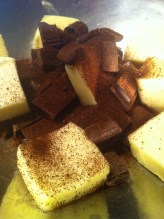 I found this great recipe on a blog called “The Kitchy Kitchen“. I pretty much followed it as they wrote it, but put in more semi-sweet chocolate chips and less dark chocolate. Here’s what you’ll need: