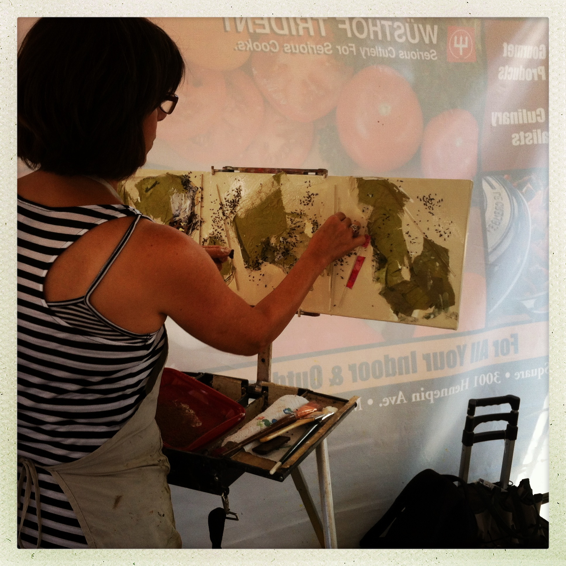 …vs. Chef Annette Colon from Sunstreet Breads & Tim Foster – Oil/Pastel. Yes, those are luscious eggs on top of her dish (you know I am egg-obsessed) and Tim’s oil painting…oh my…let’s just say, there was a bit of a discussion after the competition of just where that painting would make it’s final home!