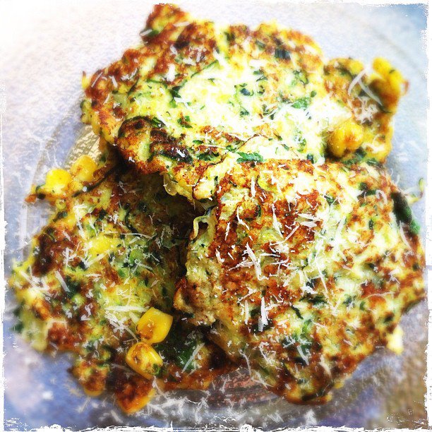 Zucchini Fritters~ another favorite recipe, this would be a great appetizer to tide everyone over while you finish off the big feast. I originally found this recipe in a copy of my favorite food magazine, Saveur. Taking a quick peek at their website I see lots of other delicious recipes for the big day! Sauce isn’t needed for these, but if you wanted, you could whip up a quick Horseradish sauce or even a tomato Tarter sauce. The picture above was a recipe I found on the Home to Homestead blog, written by the gorgeous Elizabeth Ries of Twin Cities Live, and has the added deliciousness of corn & fresh herbs! She made a quick sour cream sauce that looks delish!