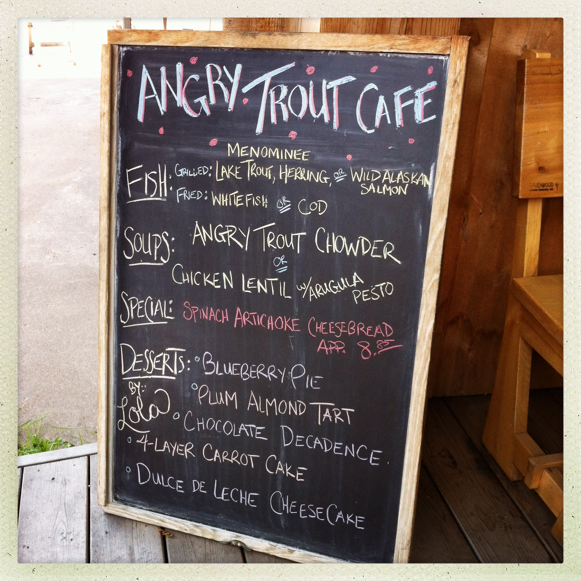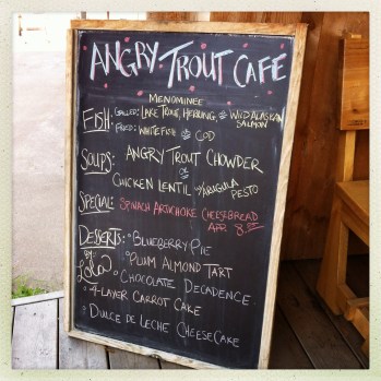 The kids loved walking around them, looking at them for design ideas and I knew, for the next few days, they’d be looking for rocks to build their own. I however, was ready to eat. Did I tell you that a restaurant I’ve known about for years is in Grand Marais? Yep, Angry Trout Cafe, here I come!!