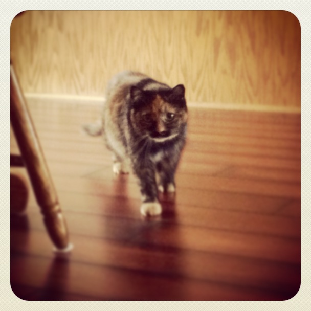 So, I am at the point of not knowing what to do. I need to get her to the vet this week, just to be checked out. And I had a long talk with my husband, and my gut is telling me she won’t be happy here with us. She (if staying inside) should be somewhere that is less noisy and maybe without any other animals. Or, in an environment where she can be outside mostly, but has maybe a barn or something she can go into when it gets really cold. So, once I have her checked out, I will begin the search to find her a permanent home. If you, or someone you know, would be interested, let me know. She’s scared but not mean. She’s been letting me pet her, but will probably take awhile to get really comfortable with touch. She actually tenses up when I touch her….poor thing. Wish me luck getting her back in the kennel for the trip to the vet. You can follow my updated pictures on Instagram here. Oh, and last night….she purr’d! Progress! 🙂