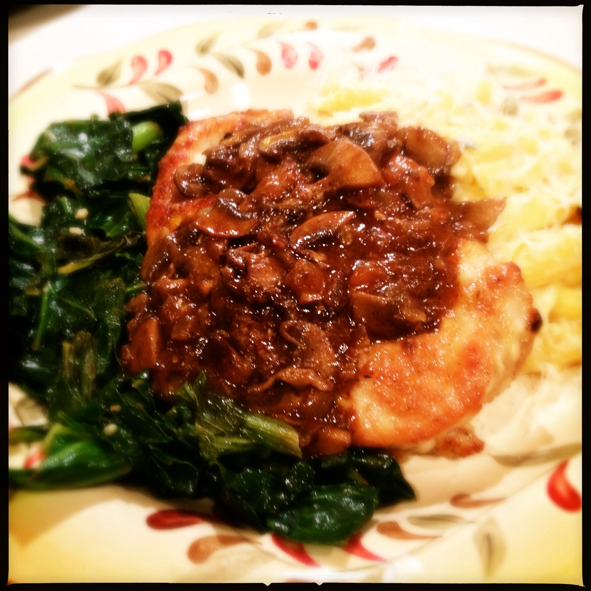 I tried my hand at making Chicken Marsala…yeah, I know, kinda weird I hadn’t already ever made it & it turned out pretty good! It’s bathed in wine & mushrooms…so what could be wrong with that?!?