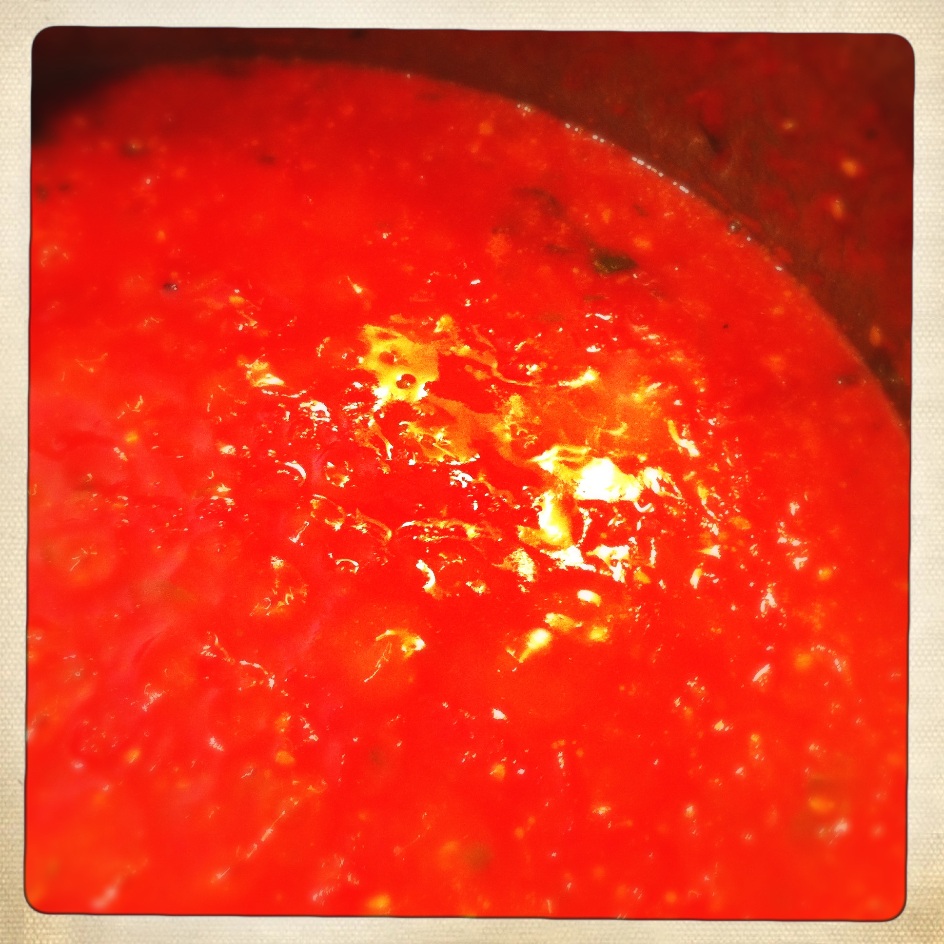 This will deglaze the pan and help pick up all those amazing bits from browning the sausage. Now taste your sauce. If you feel it need something, add more salt, or pepper, or garlic, or even some of the Basil and/or Oregano. It’s gonna simmer a bit, so the flavors will intensify eventually.