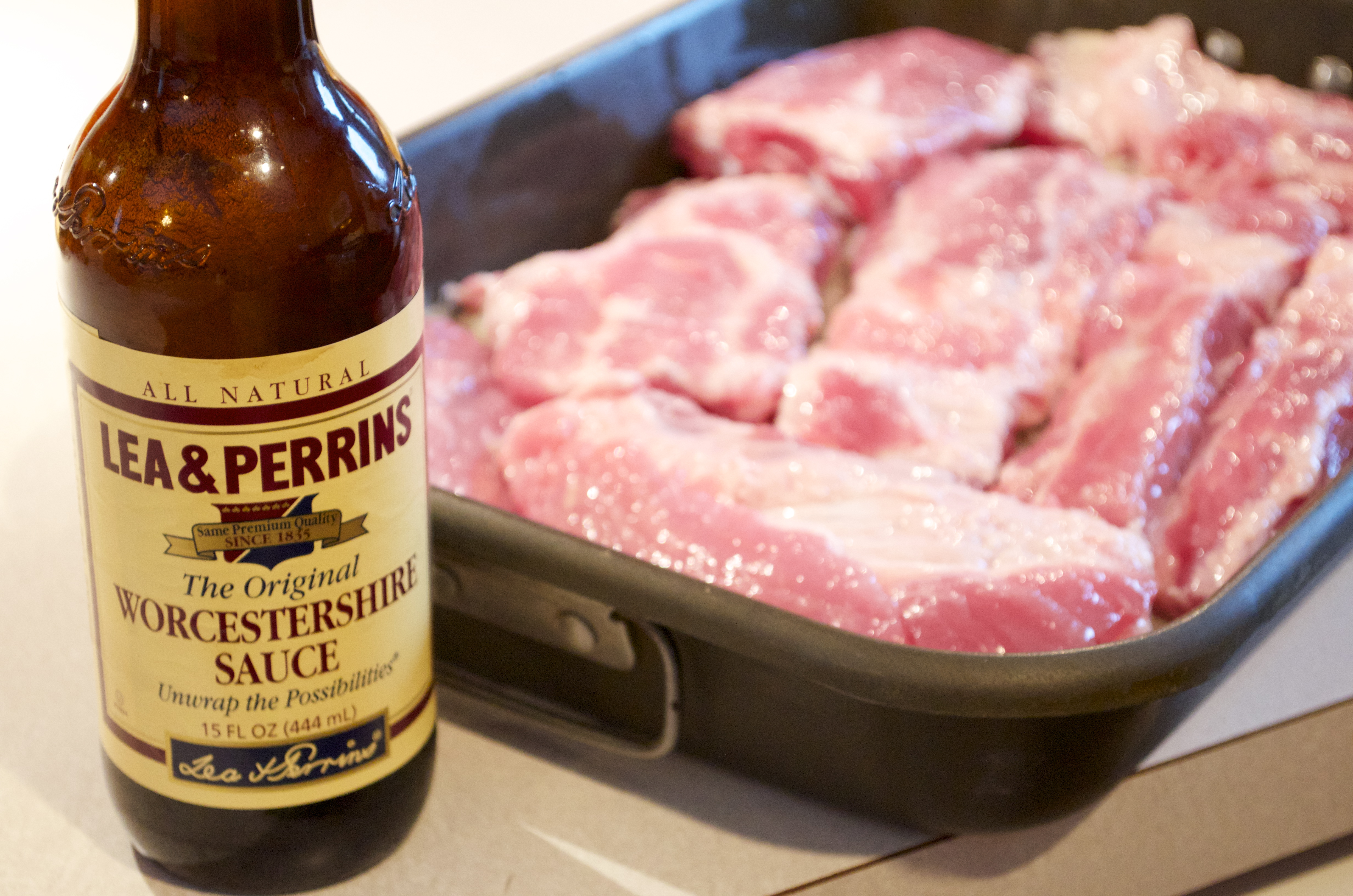 Take your Lea & Perrins and sprinkle over the ribs, generously. (you’ll want the ribs fully coated with it, so don’t be shy about it!)