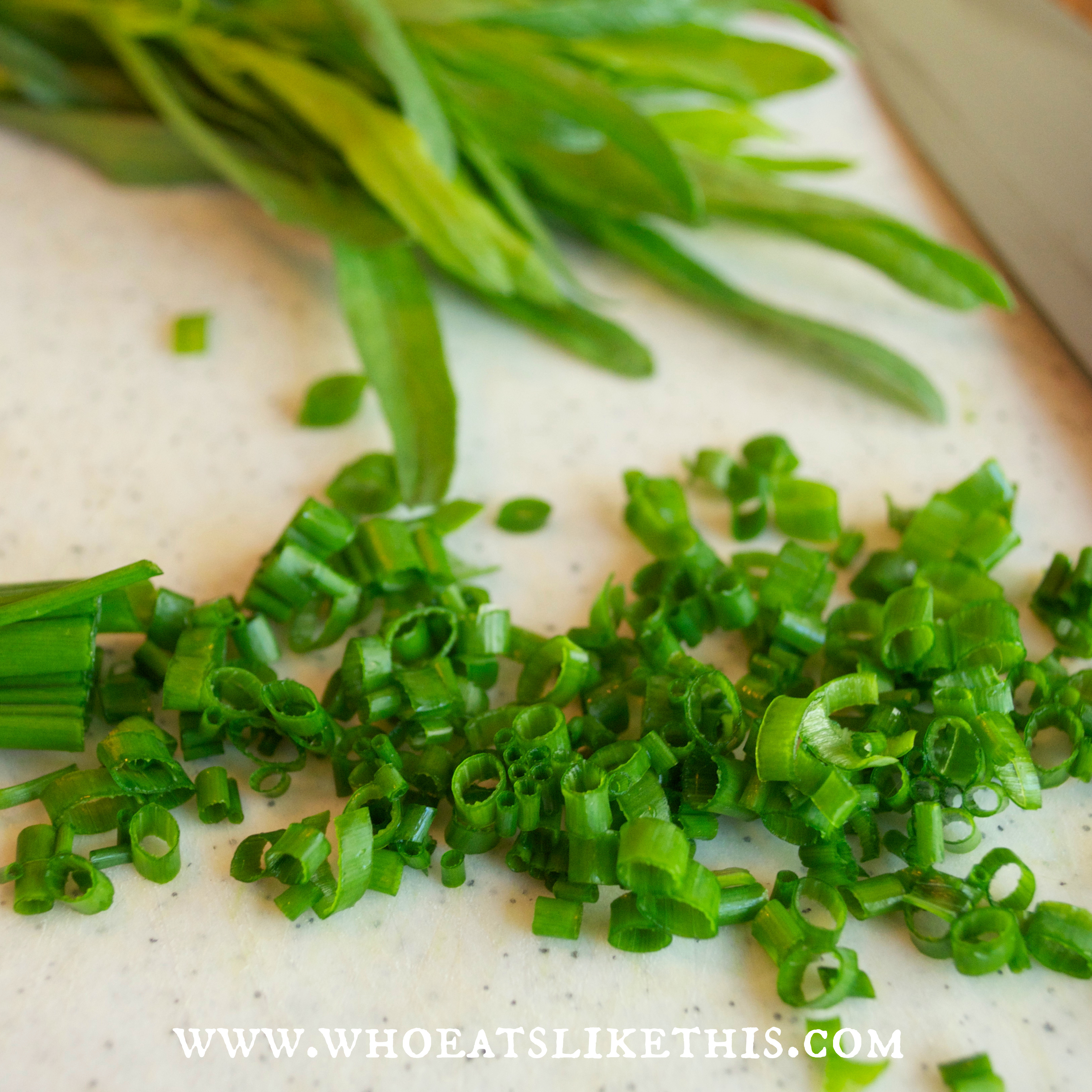 Chop up your fresh herbs. It’s really important for this recipe that you use fresh Tarragon, so if you don’t have it, look in the produce section at the grocery store. And if you live close to me, you are always welcome to some of mine!