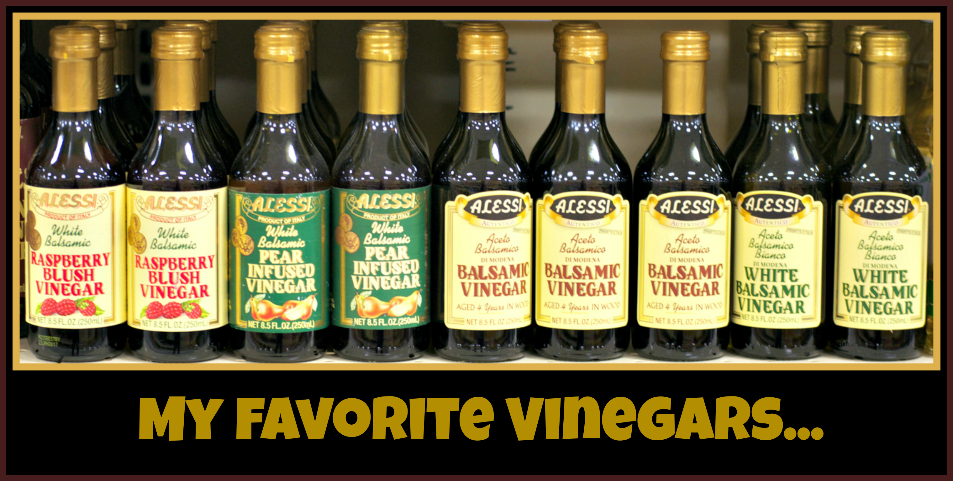 My favorite line of store bought vinegars are Alessi brand. In researching them online, I found they also make a Ginger Infused Balsamic & a Honey Balsamic vinegar I have to get my hands on!