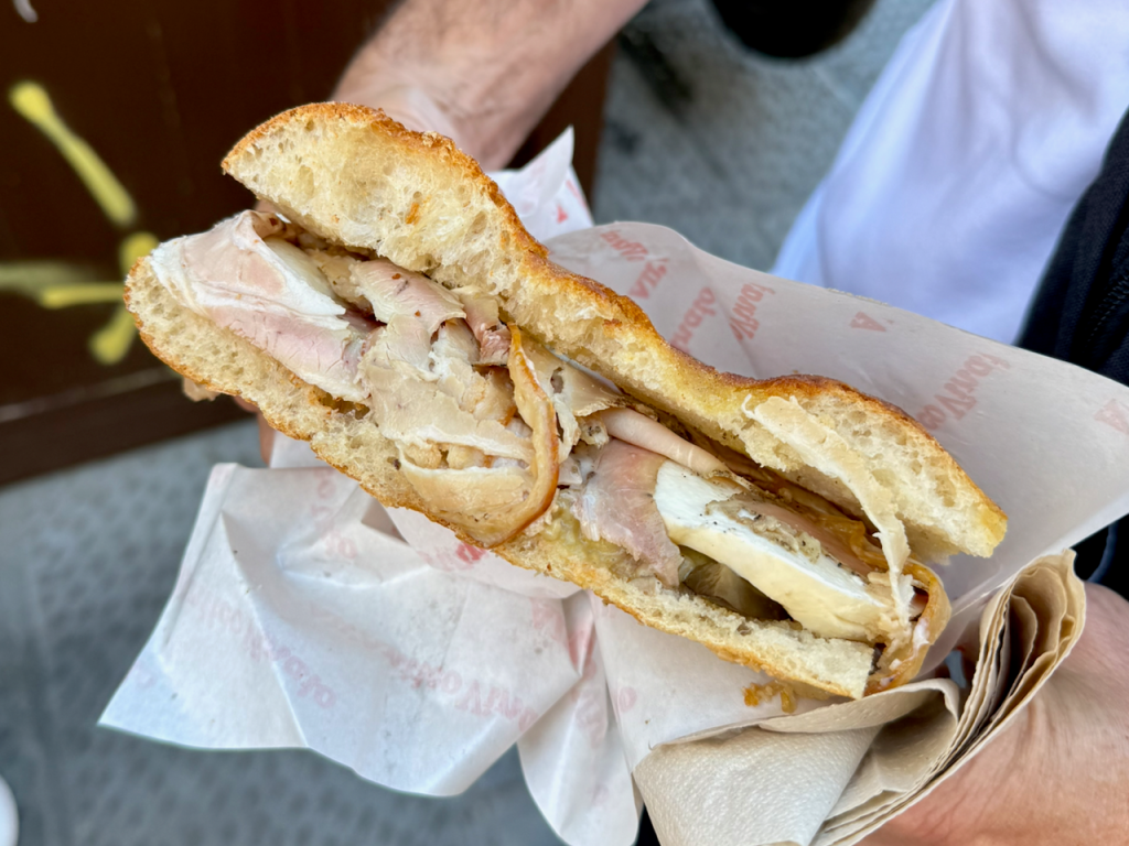 We stumbled upon the sandwich place I had been wanting to try, All’Antico Vinaio while waiting to go into the Accademia and I got The Paradise (Mortadella, pistachio cream, and stracciatella cheese with chopped pistachios!) but honestly could have ordered just about anything on that menu! We did visit a couple other places that day for food, but it was a blur and for whatever reason, I don’t remember the names of those places. I blame it on the head cold. Honestly, most of the trip was a blur…I had so many ideas of things I wanted to see, pictures & videos I wanted to take. Unfortunately, most days I was just trying to stay alive and out of the hospital 😆 ok I might be being dramatic, but it truly was hard to be myself on this trip because of that stupid cold. Our itinerary didn’t help either…definitely doing it differently in the future!